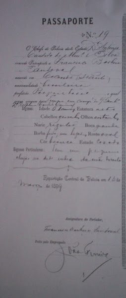Do original do Registro do Passaporte de Francisco Barbosa Sandoval :